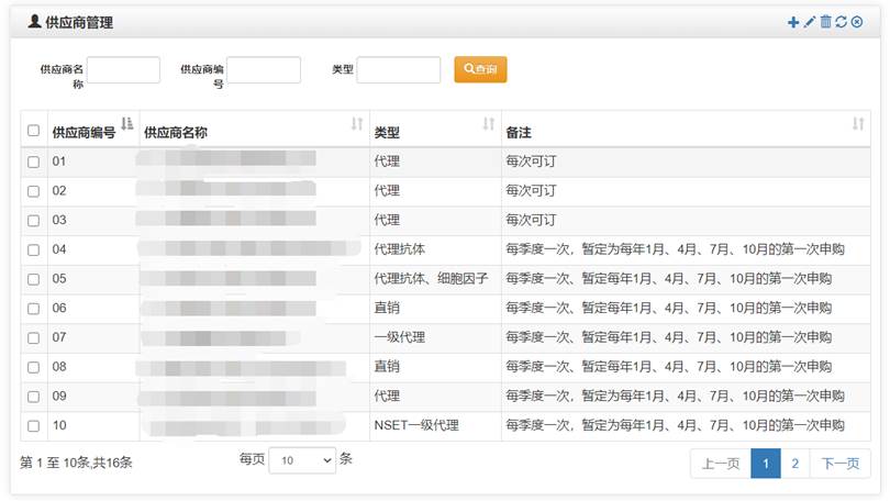 管理員可以定期進行維護更新供應商信息,所有成員可以在申購時進行供應商的選擇。
