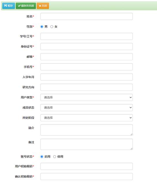 對各個課題組成員建立基本信息,對課題組成員進行統一化管理。