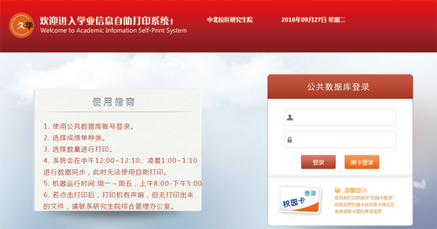 超出打印額度或終端機故障時,管理人員可登錄系統后臺幫學生打??;可根據學號、姓名查詢學生進行打印,后臺打印不占用學生的打印額度。